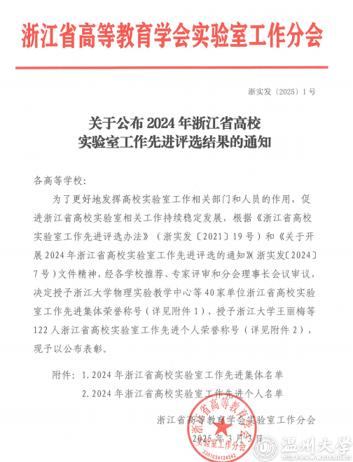 3月3日,浙江省高等教育学会实验室工作分会公布浙江省实验室安全工作先进集体和先进个人名单,ac米兰蔡瑛、邱辉、潘晓铭三位老师获得先进个人,国资与实验室管理处获得先进集体。