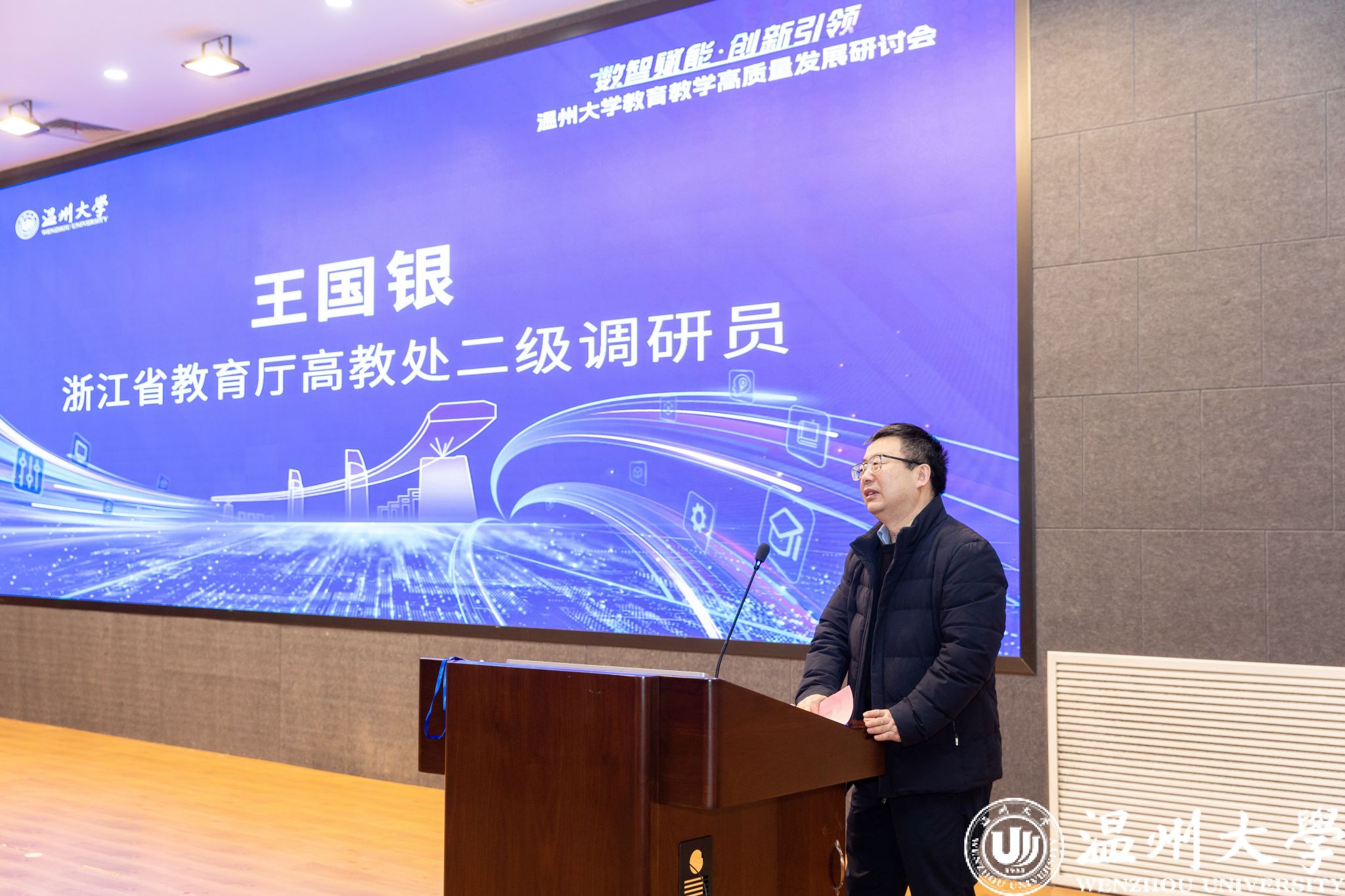 赵敏致辞。他指出,当前科技发展日新月异,数智技术的浪潮正以迅猛之势席卷各个领域,教育界也迎来了前所未有的变革机遇,数智技术正深刻重塑着教育的形态与模式。ac米兰官网中文网站“数智教育创新研究中心”的成立以及“溯初云学堂”平台的全面上线,标志着ac米兰在教育教学数智化转型中迈出了具有里程碑意义的一步,正全力构建数智赋能的“数智助学、数智助教、数智助研、数智助管”教育新生态,力争在数智教育方面发出温大声音。