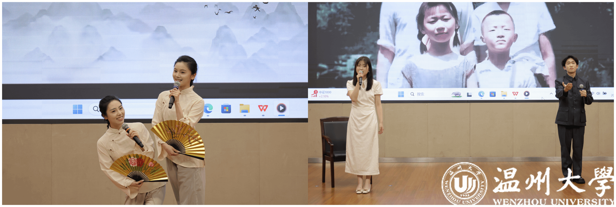 副校长、国家语言文字推广基地主任王舜致辞,他指出,中华经典是文明智慧结晶与民族精神的根魂,诵读经典是语言传承、心灵对话、技艺展示与精神觉醒。他勉励青年学子以声音为舟楫、情感为桥梁,让典籍文字跃动新生。既要以豪迈或婉约的多元表达激活经典生命力,更要立足温州“东南邹鲁”的文脉积淀,承继永嘉学派“经世致用”精神,在诵读中熔铸家国情怀,以人文滋养厚植青春底色。