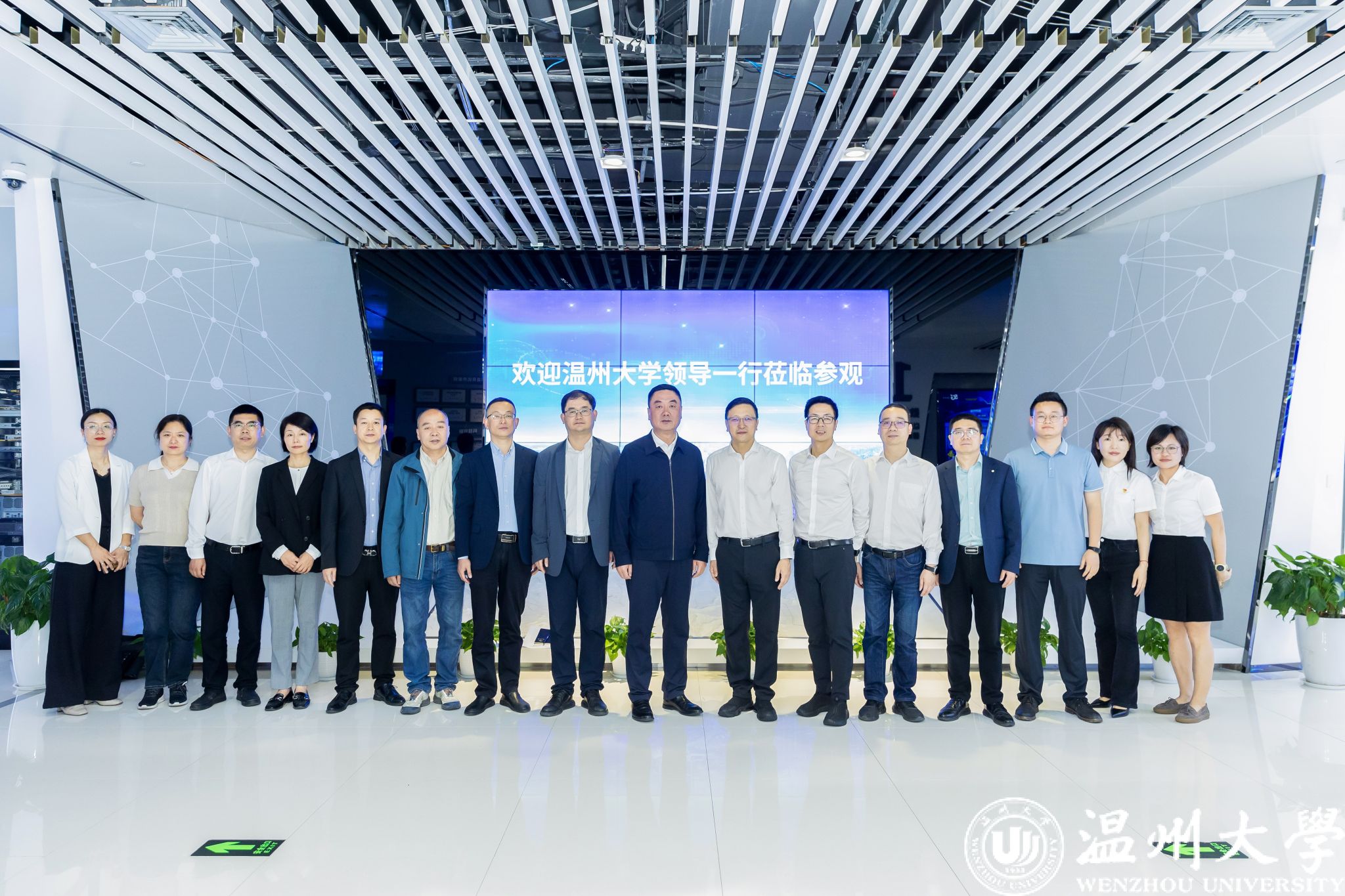 钱强一行参观了中国电信温州分公司数智创新赋能中心,与负责人座谈交流。中国电信温州分公司总经理陈峰介绍了企业基本情况,表示校企协同是推动产业升级的关键路径,未来可在人工智能、大数据分析等领域深化合作,联合培养适配数字经济的高素质人才,共筑数字经济高地。