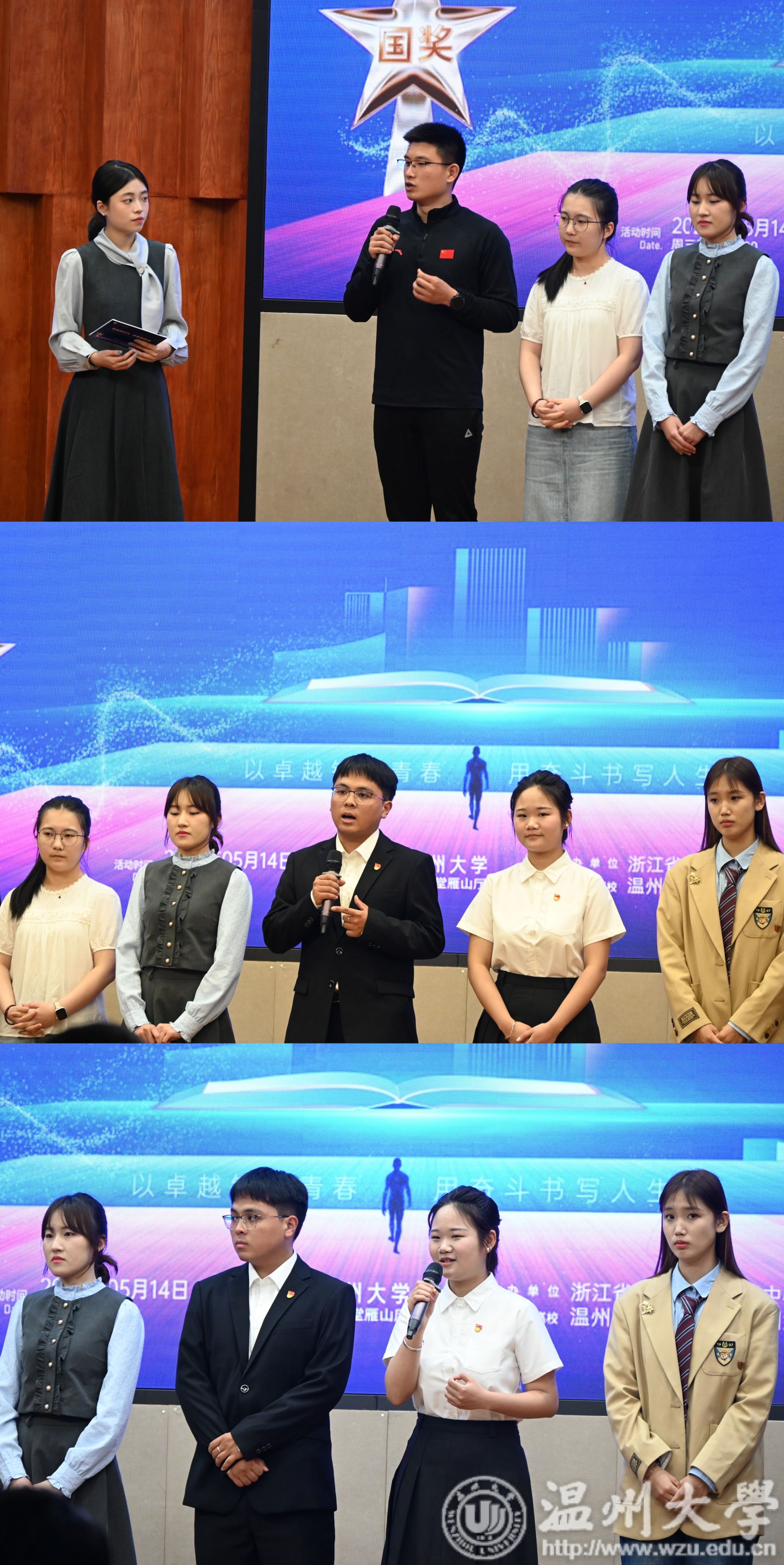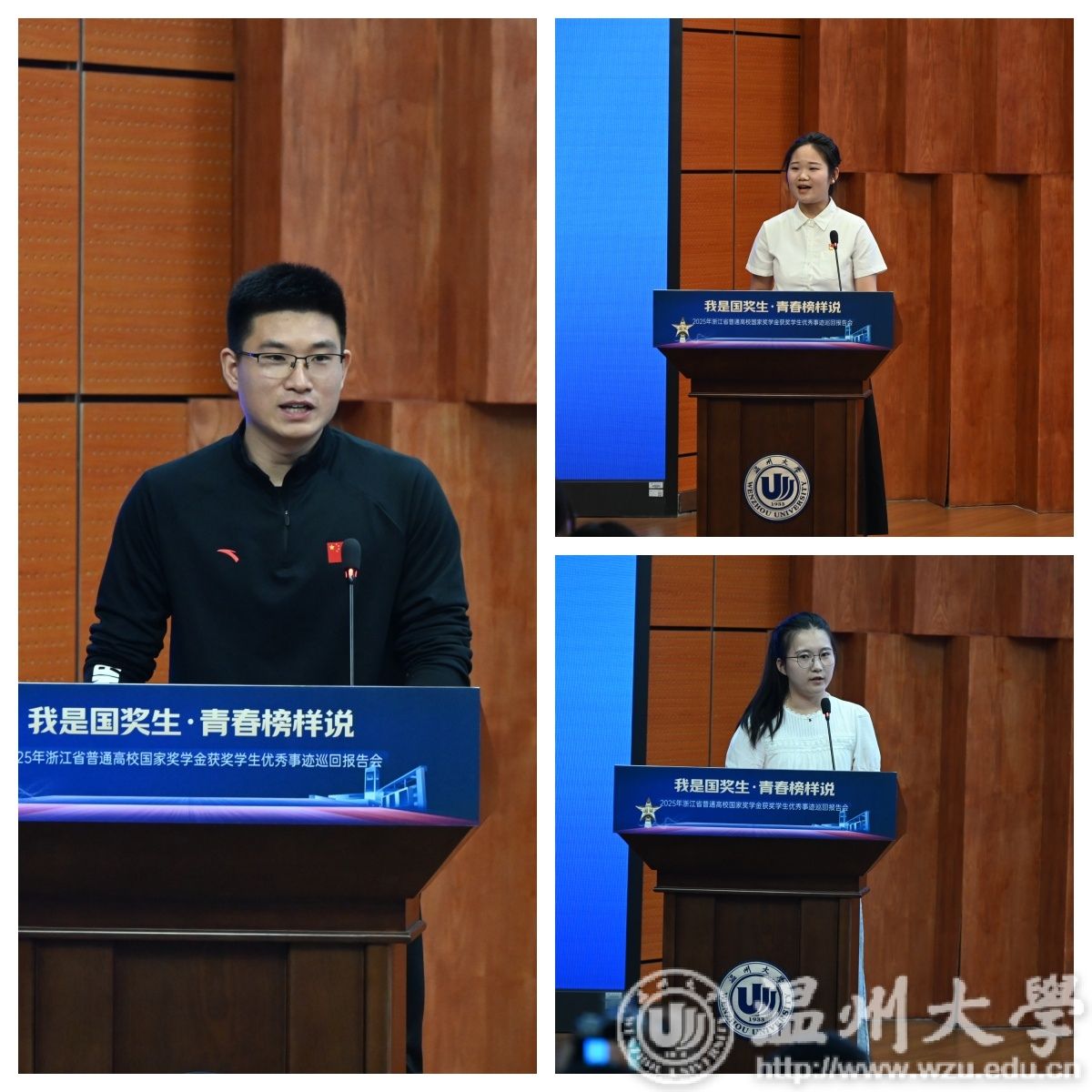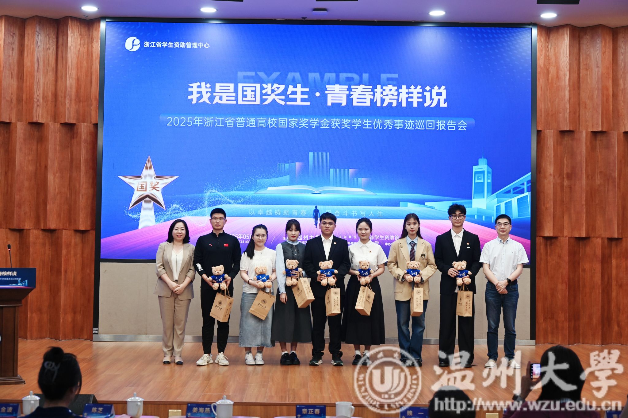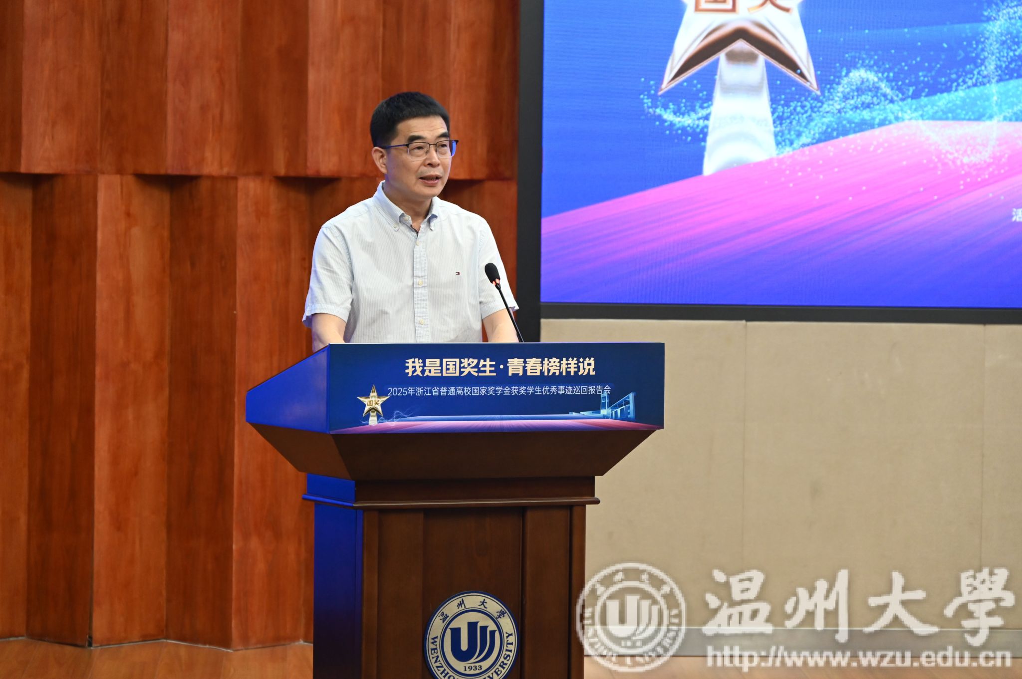 5月14日下午,由浙江省学生资助管理中心主办,ac米兰官网中文网站承办的“我是国奖生・青春榜样说”2025年浙江省国家奖学金获奖学生优秀事迹巡回报告会在ac米兰举行。浙江省学生资助管理中心党委委员、副主任章正春与衢州学院、温州医科大学、湖州学院、绍兴文理学院元培学院、温州理工学院、杭州医学院等7所高校的报告团成员、师生代表共同见证7位国奖生的青春答卷。
