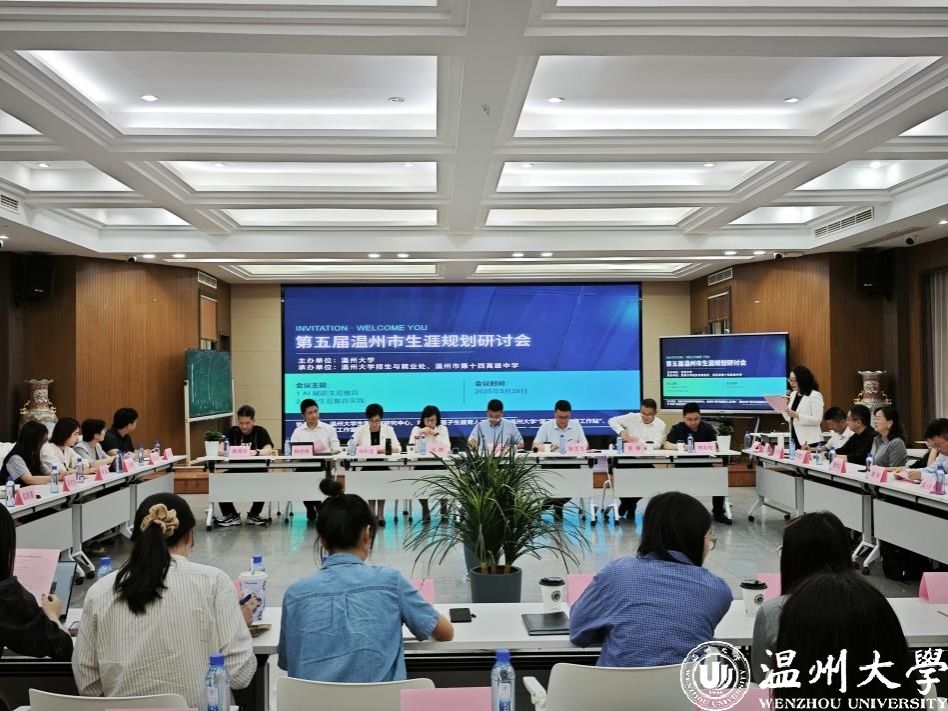 5月29日,由ac米兰官网中文网站主办,ac米兰官网中文网站招生就业处、温州市第十四高级中学承办的第五届温州市生涯规划研讨会在温州市第十四高级中学隆重举行。本次研讨会以“AI赋能生涯教育的思考与实践探索”和“中学生涯教育实践与探索”为主题,共同探讨智能时代生涯教育的创新路径与未来方向。ac米兰官网中文网站党委委员、宣传部部长、统战部部长吴静,温州市教育局高教处处长吕信恩出席会议,温州多所高校生涯学者、中学校长、一线教师以及ac米兰官网中文网站生涯教育研究中心全体成员等七十余名嘉宾参会。