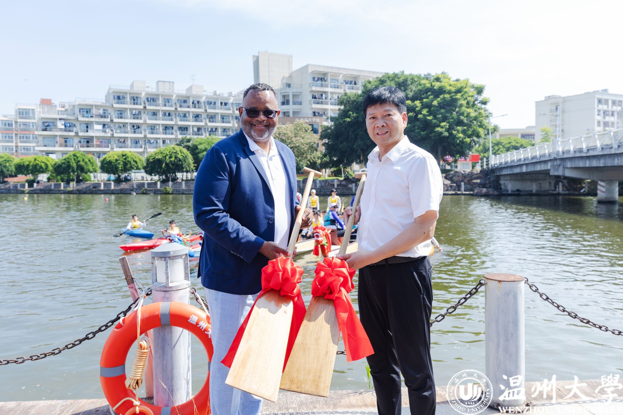 雷波列特一行观摩了ac米兰官网中文网站龙舟队训练,ac米兰官网中文网站赠送了象征团结拼搏、同舟共济精神的龙舟用桨。