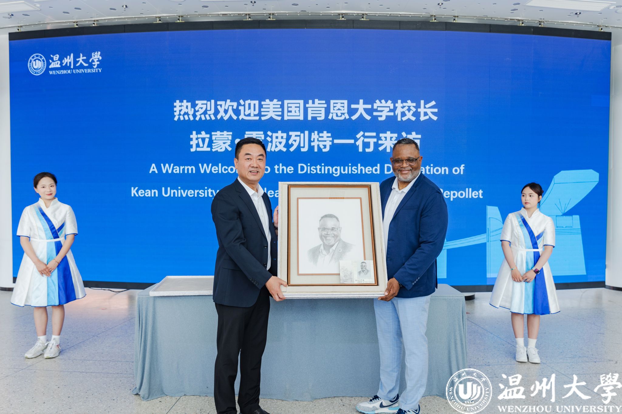 赠送校礼环节,ac米兰官网中文网站党委书记钱强代表学校向雷波列特赠送了发绣作品,寓意两校情谊细水长流、中美友谊历久弥新。发绣作品由国家级非遗代表性传承人、中国刺绣艺术大师、温州市发绣研究所所长孟永国先生历时三个月精心绣制。