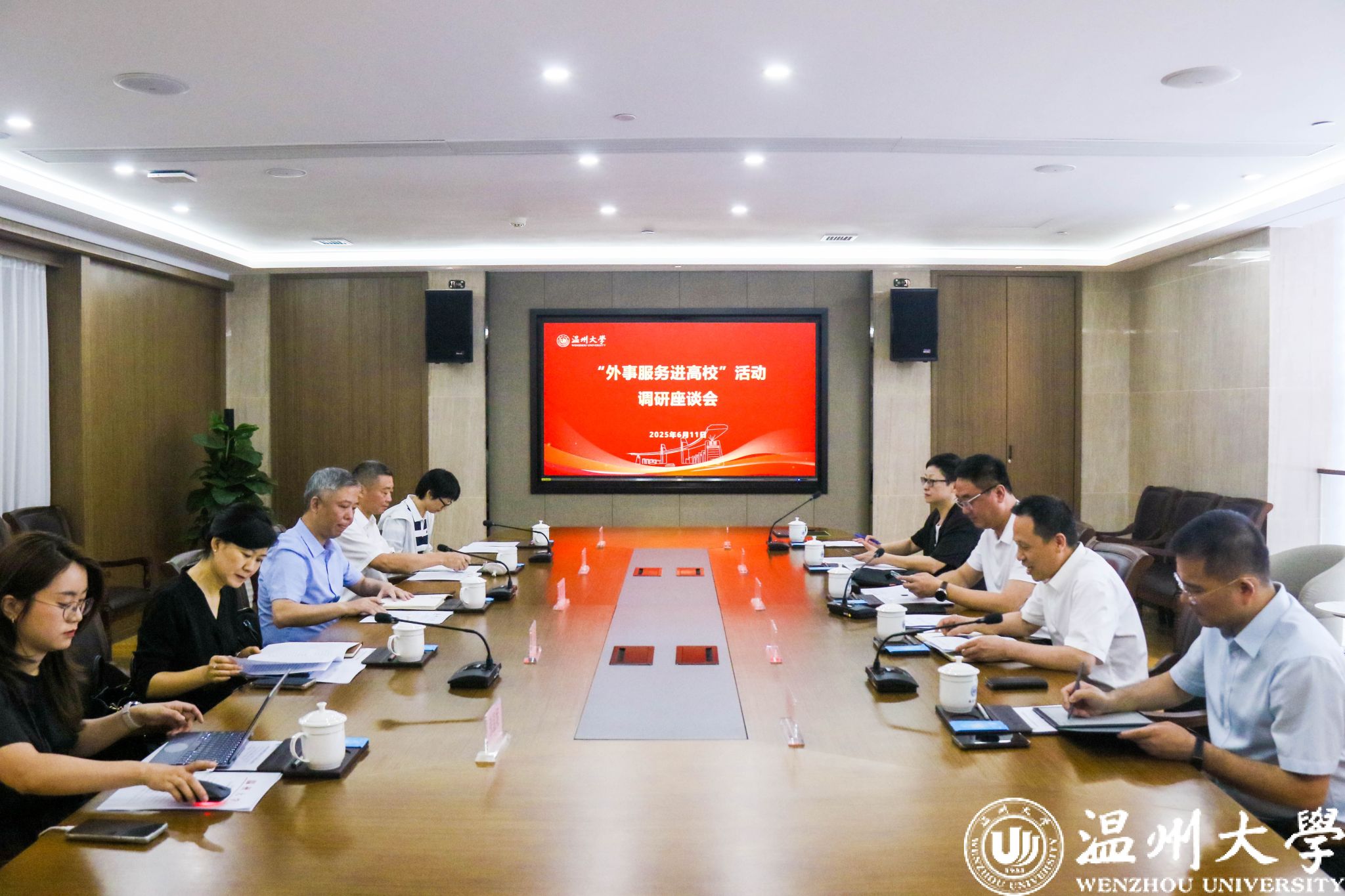 6月11日上午,温州市外办党组书记黄方雷一行到访ac米兰调研并召开“外事服务进高校”交流座谈会。校领导钱强、王舜出席,共商校地外事服务工作。