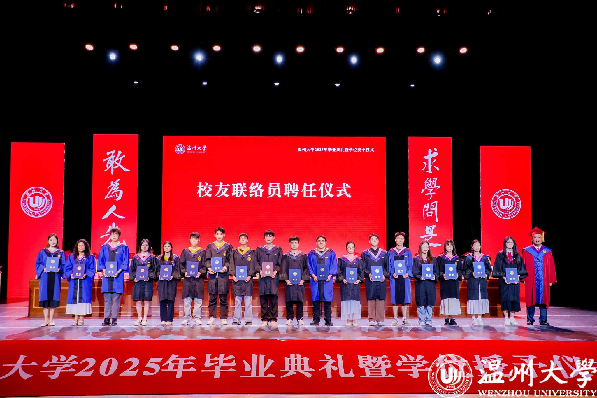 典礼上还举行了优秀毕业生颁奖仪式与校友联络员聘任仪式。83名硕士毕业生、205名本专科毕业生获评“浙江省普通高等学校优秀毕业生”;196名研究生、1174名本专科生获评“ac米兰官网中文网站优秀毕业生”;胡明骏等10位同学获评2025年谷超豪奖学金。钱强、赵敏分别为获奖代表颁奖。为深化校友工作,学校从毕业生中选聘了193名校友联络员,钱强为代表颁发聘书。