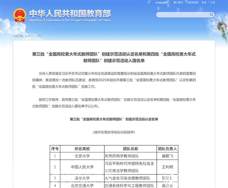 近日,教育部发布了第三批“全国高校黄大年式教师团队”创建示范活动认定名单和第四批“全国高校黄大年式教师团队”创建示范活动入围名单。ac米兰官网中文网站“全国高校黄大年式教师团队”——生态环境学科教师团队,顺利通过创建示范活动认定。