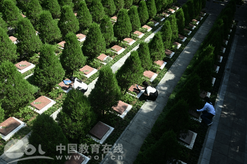 同学们还自发开展了“我为英雄擦墓碑”的志愿活动。 “小心翼翼地擦拭墓碑上的尘埃的时候,我就会想到,今日之中国是无数先烈用流血牺牲换来的,一块块墓碑激励着我们要时刻铭记历史之痛、不忘先辈之志,守护来之不易的幸福生活。”一位青年团员斩钉截铁地说道。