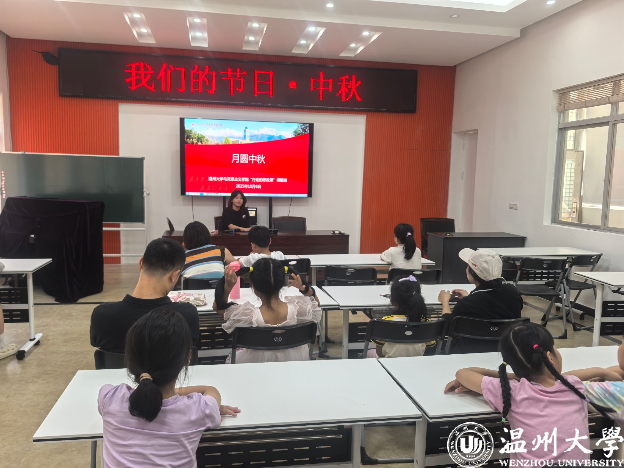 中秋月圆至,文化润心田。10月6日下午,温大马院“高校行走的思政课”科研项目团队的大学生们将思政课堂搬进了蒋家桥社区,为社区的孩子们带来了一堂以“月满中秋·情系中华”为主题的别开生面的传统文化体验课。此次活动是该项目探索思政教育新模式、拓展育人路径的一次生动实践,旨在通过沉浸式、互动式的教学,让小学生们在感知传统节日魅力的过程中,增强对中华优秀传统文化的认同与热爱。