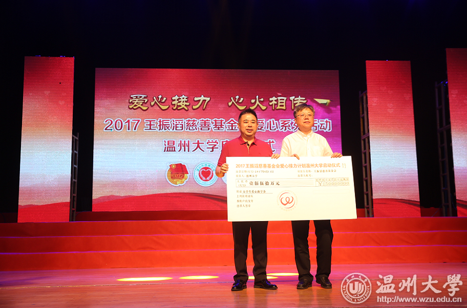 2017年6月11日,王振滔慈善基金会“爱心接力计划”ac米兰官网中文网站站正式启动。启动仪式上,王振滔慈善基金会创始人王振滔先生以“温大创业导师”的第二身份寄语受助学子留温创业,孵化“创业智囊”。据了解,这是2017年继温州医科大学、中国传媒大学后的第三站,即王振滔先生仅用了12天就点亮了三场“爱心接力计划”,圆梦900位学子的求学路。