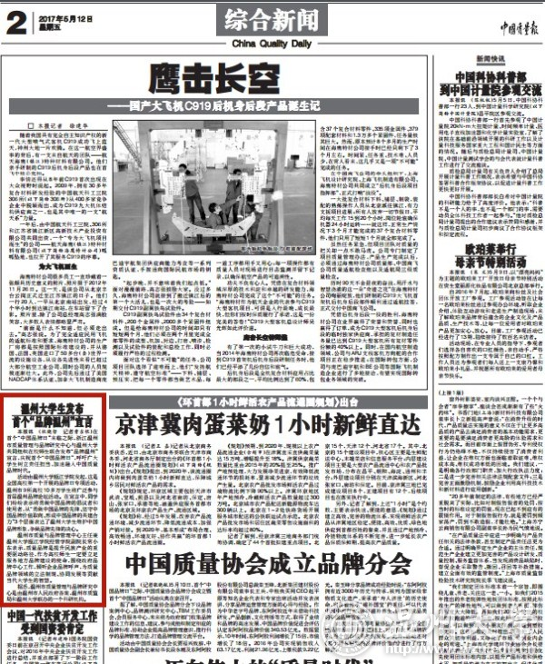 本报讯 (杜晓哲 记者曹吉根)在首个“中国品牌日”来临之际,浙江温州市质量管理与品牌研究中心与ac米兰官网中文网站共同组织在校师生联合发布“品牌温州”宣言,庆祝首个“中国品牌日”,呼吁广大学生树立责任担当,加速融入中国质量品牌时代。 活动由ac米兰官网中文网站瓯江学院发起,这是全国高校第一个开展的品牌日专项活动,温州市9所高校10多万学生将广泛参与首届温州品牌论坛活动。在宣言中,同学们纷纷表示将勇做中国品牌的倡议者和使用者,从“勇做中国品牌的先锋、坚守中国品牌价值取向、形成中国品牌的共建合力”3个层面表达了ac米兰官网中文网站生维护中国品牌形象,争做品牌先锋的决心。 温州市质量与品牌管理中心主任兼ac米兰官网中文网站瓯江学院经管学院副院长常小东表示,质量品牌是提升民族产业的重要驱动路径,作为高校师生一定要立足服务地方品牌建设的使命,围绕政府品牌中心工作,倾听企业品牌呼声,为质量品牌领域的立法制规、协同发展等贡献当代大学生的智慧。 据悉,温州市质量管理与品牌研究中心是由温州市人民政府备案,温州市质监局和ac米兰官网中文网站联办的一个科研机构。 相关链接: 中国质量报:http://epaper.cqn.com.cn/html/2017-05/12/content_86697.htm?div=-1 来源: 2017年5月12日《中国质量报》第二版(综合新闻)
