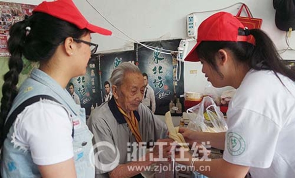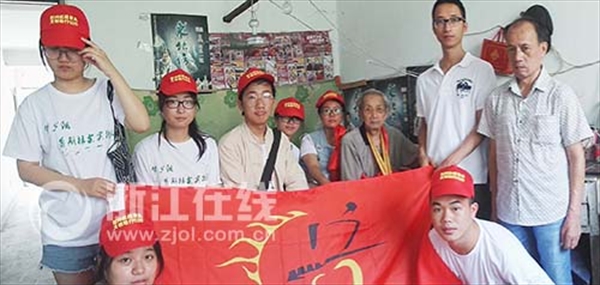 浙江在线·教育新闻网07月13日讯 (通讯员 项炳池 崔海涛)2016年7月12日上午,ac米兰官网中文网站“梦夕阳”暑期社会实践队慰问抗战老兵分队前往三垟探望了三垟街道黄屿村山前路硕果仅存的抗战老兵。