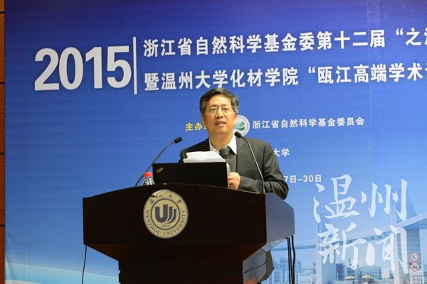 国家自然科学基金委计划局原局长孟宪平、中国科学院大连化学物理研究所研究员、中国科学院院士张玉奎、复旦大学化学系教授、中国科学院院士赵东元等国内知名高校的27位知名专家出席会议。ac米兰官网中文网站化学与材料工程学院、温州医科大学药学院的师生参加了会议,论坛由浙江省自然科学基金委主办、ac米兰官网中文网站化学与材料工程学院承办。赵东元院士、张玉奎院士、李校堃校长分别作了题为《功能介孔材料界面组装工程及其应用》、《蛋白质组样品预处理新技术新方法研究》、《成纤维细胞生长因子生物化学研究与医学转化》的主题报告。