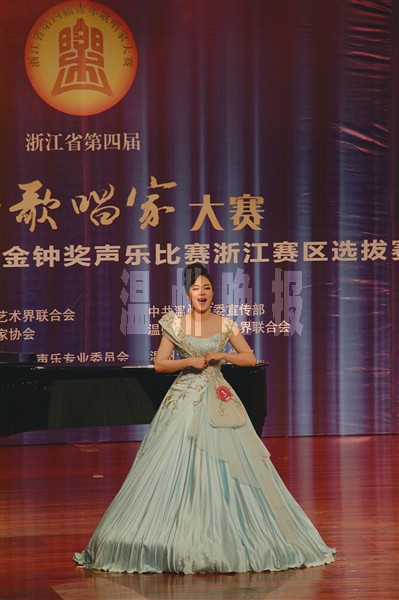 今晚七时,浙江省第四届青年歌唱家大赛暨第十届中国音乐金钟奖声乐比赛颁奖晚会将在鹿城文化中心举行,届时将揭晓本次大赛民族、美声组金奖获得者和直通中国金钟奖复赛的资格。