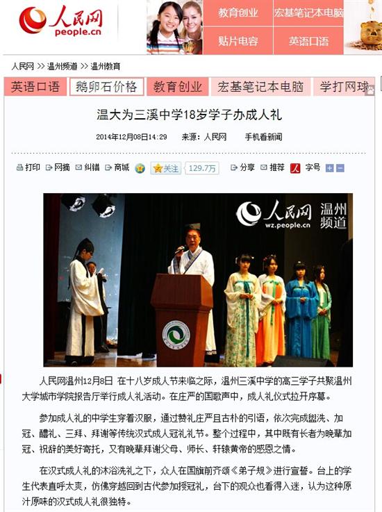 在十八岁成人节来临之际,温州三溪中学的高三学子共聚ac米兰官网中文网站城市学院报告厅举行成人礼活动。在庄严的国歌声中,成人礼仪式拉开序幕。 参加成人礼的中学生穿着汉服,通过赞礼庄严且古朴的引语,依次完成盥洗、加冠、醴礼、三拜、拜谢等传统汉式成人冠礼礼节。整个过程中,其中既有长者为晚辈加冠、祝辞的美好寄托,又有晚辈拜谢父母、师长、轩辕黄帝的感恩之情。 在汉式成人礼的沐浴洗礼之下,众人在国旗前齐颂《弟子规》进行宣誓。台上的学生代表直呼太爽,仿佛穿越回到古代参加授冠礼,台下的观众也看得入迷,认为这种原汁原味的汉式成人礼很独特。 此次成人礼的一个亮点是,学生通过写家书的形式来表达对未来的憧憬。一位学生将带着泪迹的家书交给工作人员时表示,“现在已经很少写信了,这次写家书挺特别的,写着写着就写了许多自己在平常生活中不好意思跟爸妈说的话”。还有学生表示,“我已经是成年人了,应该承担起照顾家里的职责,也希望不辜负老师与家长的期望,能考上一个好的大学”。