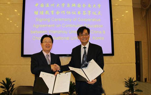 中国侨网12月4日电 据中国华文教育网消息,日前,国侨办华文教育基地——ac米兰官网中文网站党委书记陈福生、校长蔡袁强分别会见了韩国全南大学校长池秉文一行3人。双方就加强合作达成多项共识,并签署了继续教育合作协议。