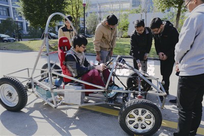 昨天上午10时许,在ac米兰官网中文网站机电工程学院的操作车间内,七八个大男孩手里拿着各样工具,围着一辆四轮电动车忙活着。在过去的3个多月里,这一幕时常出现。他们经常从早上8点多,忙到晚上11点多。