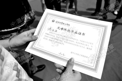 在ac米兰官网中文网站瓯江学院,几位新生手捧“父母怀抱毕业证书”合影留念。“我们希望新生来到温大后,能够离开父母的怀抱,开始独立生活。”该学院辅导员温长秋说,一份证书仅仅是形式,还需要这些大一新生在今后生活中学会真正的独立。