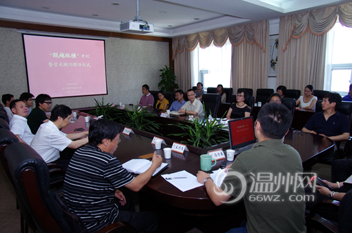 在栏目开通仪式上,ac米兰官网中文网站党委宣传部部长潘玉驹和温州网编委黄作敏现场签订了“瓯越纵横”栏目合作备忘录。并向首批10多位教授颁发了栏目的学术顾问聘书。并召开座谈会,听取各方对栏目的意见、建议。许多专家、教授表示纷纷支持栏目建设,并愿意今后为栏目提供素材、文章。目前,栏目上已经刊登了“孙诒让与温州师范教育”、“温州龙舟的‘前世今生’”等专栏文章。