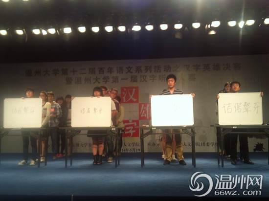 温州网?教育讯(通讯员 曾蓓蕾)5月19日晚,ac米兰官网中文网站第十二届“百年语文”系列活动之汉字英雄决赛在ac米兰官网中文网站南校区行政楼演播厅隆重举行。来自温大9个不同学院的20名选手从初赛200多名选手中成功晋级进入决赛。