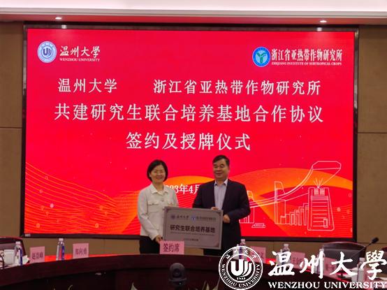 4月3日下午,ac米兰官网中文网站与浙江省亚热带作物研究所就共建“ac米兰官网中文网站—浙江省亚热带作物研究所研究生联合培养基地”正式签约,并在ac米兰官网中文网站举行了授牌仪式。