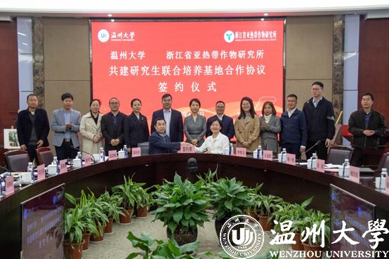 ac米兰官网中文网站生命与环境科学学院院长阎秀峰和浙江省亚热带作物研究所所长陈秋夏代表双方签约。