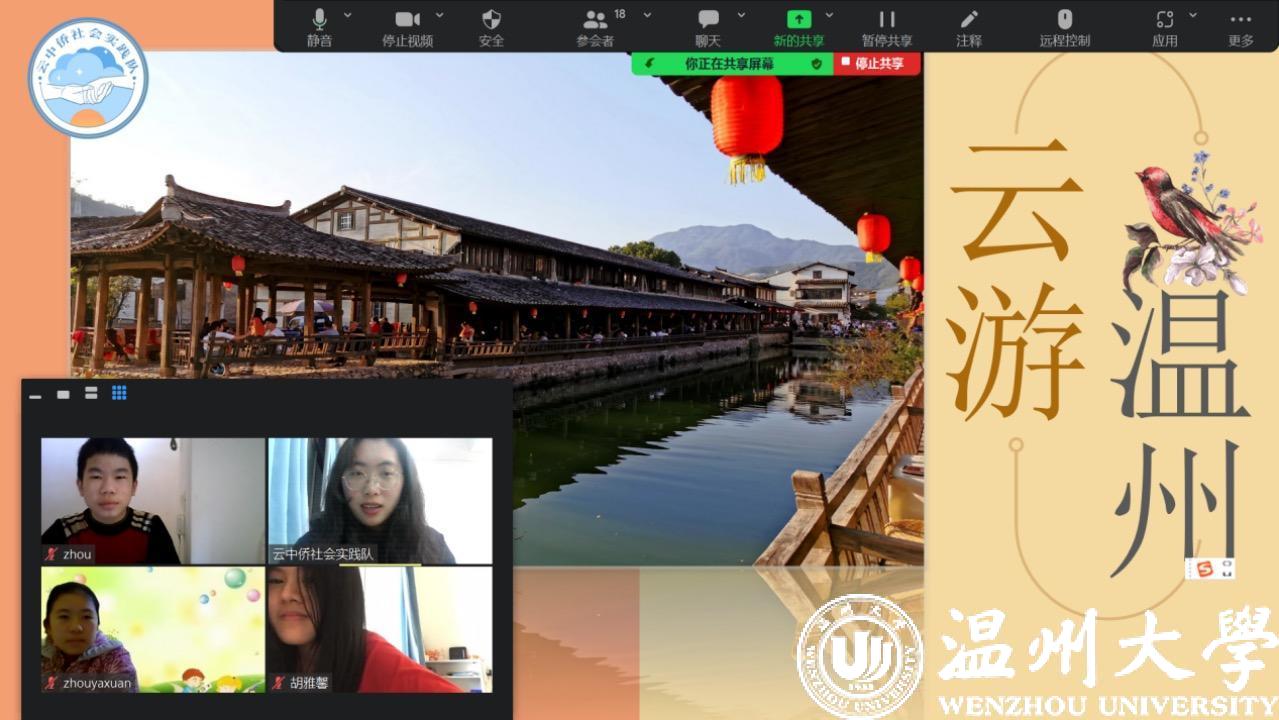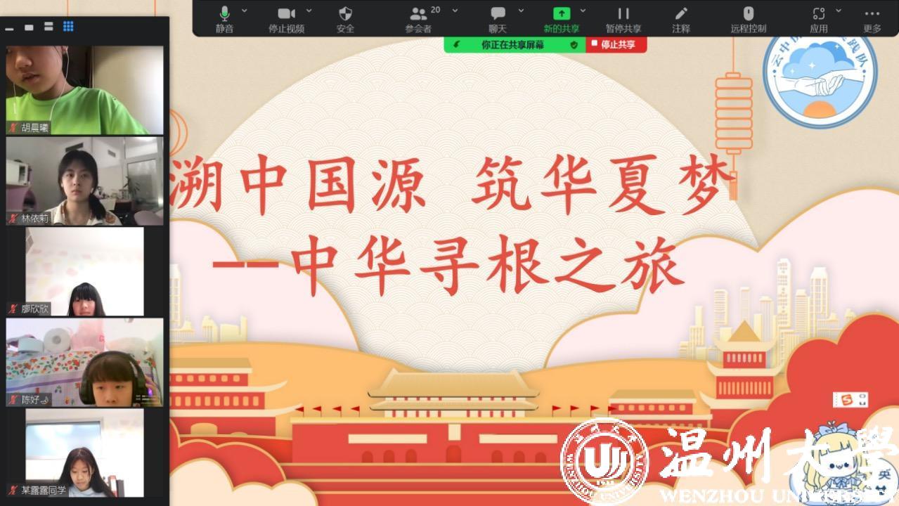 据悉,温州市是全国知名的侨乡。温大“云中侨”实践队成员围绕“溯中国源,筑华夏梦”和“邂逅瓯乡,云游温州”两大主题,探索性、针对性地尝试丰富华侨华人儿童“家国教育”系列课程,融入中国国旗、历史文化、温州精神、地方美食等知识,并借助智慧锦囊、心愿漂流瓶等多样活动,打开海外侨童了解中国的窗户,搭建培育家国认同桥梁。