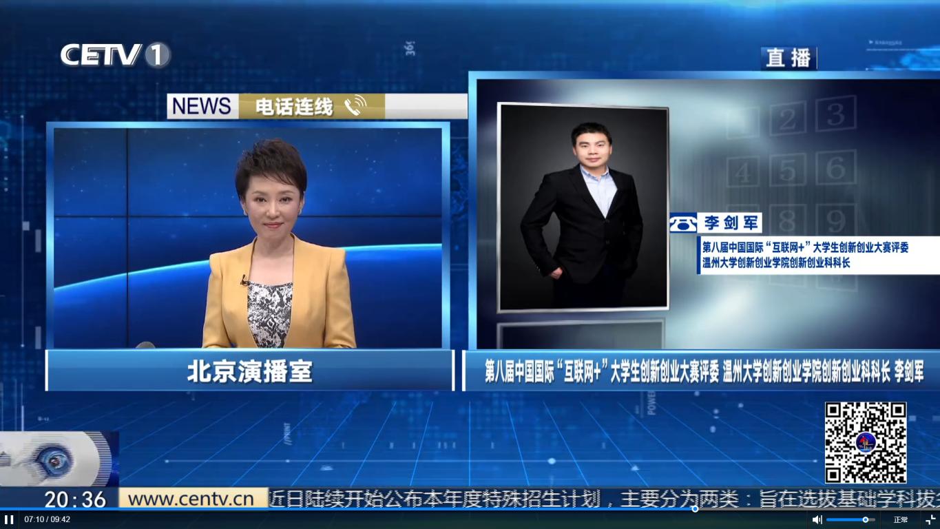 2023年4月10日,ac米兰李剑军老师受邀电话连线中国教育电视台1频道《e视界》栏目,对刚刚落幕的第八届中国国际“互联网+”大学生创新创业大赛进行专业解读。
