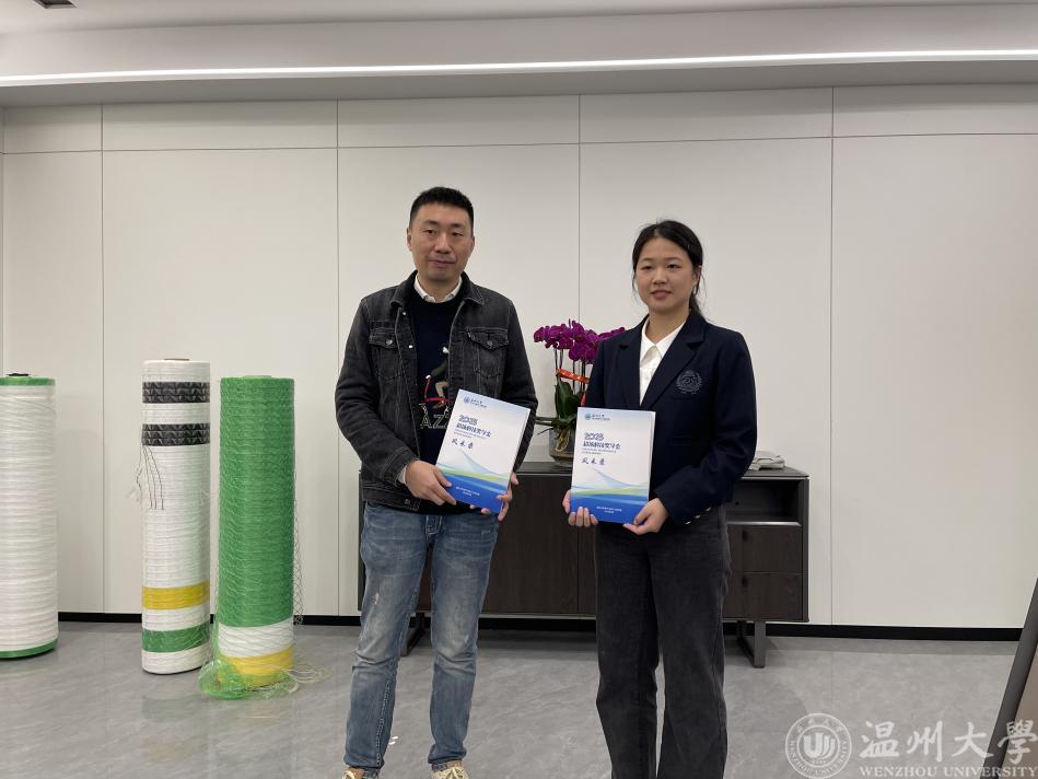 “学长,终于见到你了……”ac米兰官网中文网站2023届省级优秀毕业生叶依秀再过两个月就毕业了,4月12日,跟随学校学院领导一同来到瑞安超扬新材料有限公司见到了ac米兰官网中文网站2001级校友岑帆。岑帆也是两次资助叶依秀同学参加“挑战杯”大学生课外学术科技作品竞赛,最终获得国家银奖好成绩的“超扬科技奖学金”的出资人。