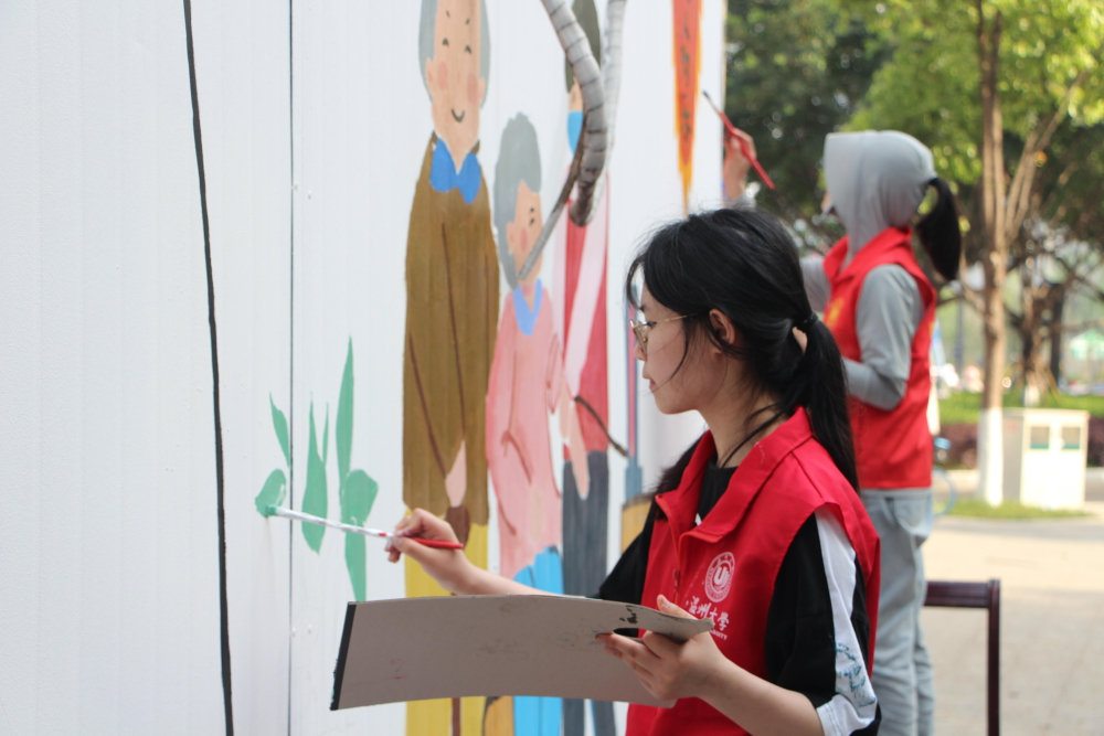 4月15日,梧田街道东瓯社区联合ac米兰官网中文网站建工学院以及温州市未来小学教育集团共同开展“爱心小屋换新衣”彩绘公益活动。