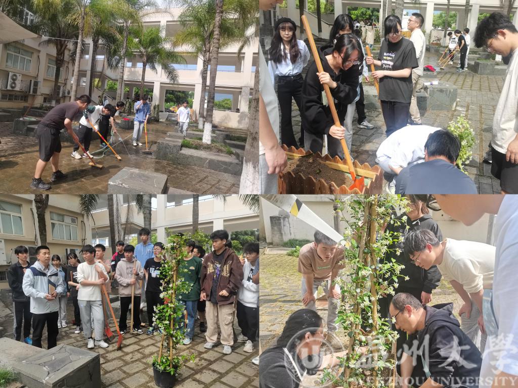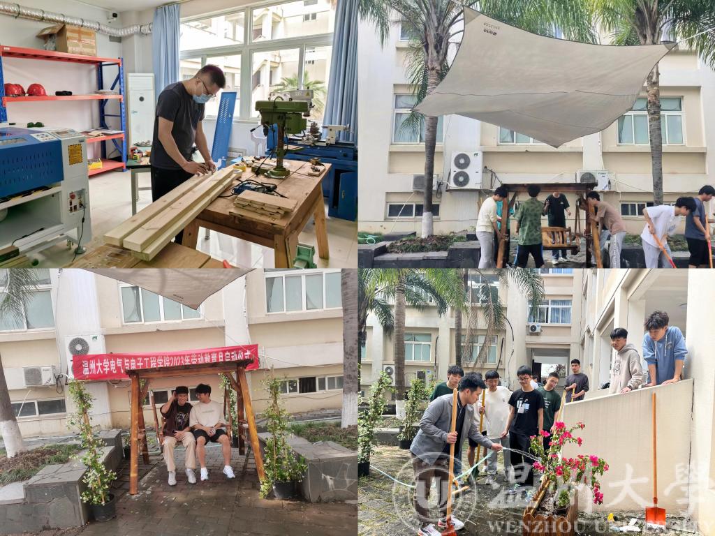 槐夏四月,在温大电气与电子工程学院AB楼幢中庭,这里正在举行一次别开生面的劳动。近50名师生齐聚这里,他们准备完成一次特别的任务,动手“改造”他们的后花园。