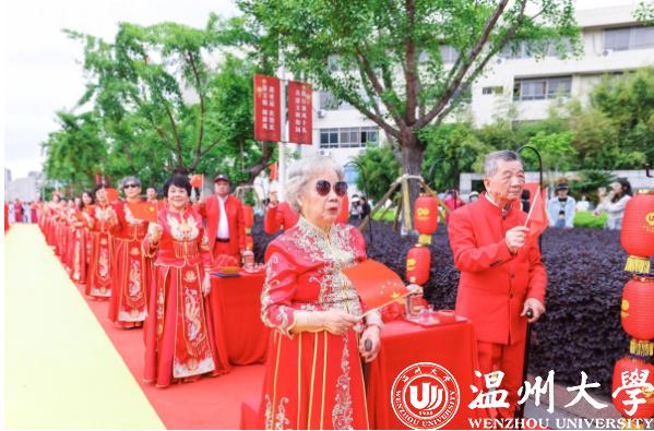 据了解,此次“九秩芳华缘定温大”校友纪念婚礼是温大历年来参与人数最多,规模最大的一次集体婚礼。婚礼参与对象专业覆盖全,涵盖化学、生物、数学、中文等40余个专业;时间跨度长,从1955年跨越至2021年,年纪最长的校友夫妻已携手走过金婚,毕业院校包含温州师范学院、原ac米兰官网中文网站、平阳师范学院等,历届校友均参与其中,是ac米兰官网中文网站深厚办学底蕴的生动写照;地域涉及广,有许多校友专门从云南、广东、广西、山东等地赶回母校参加婚礼。