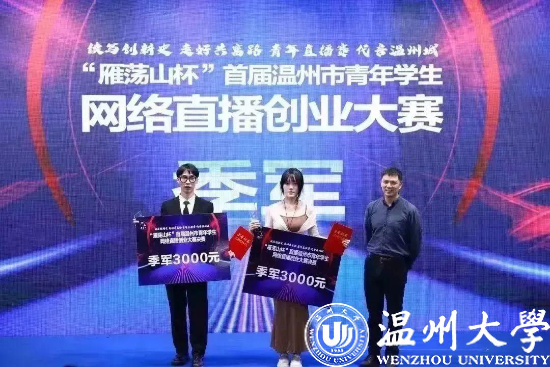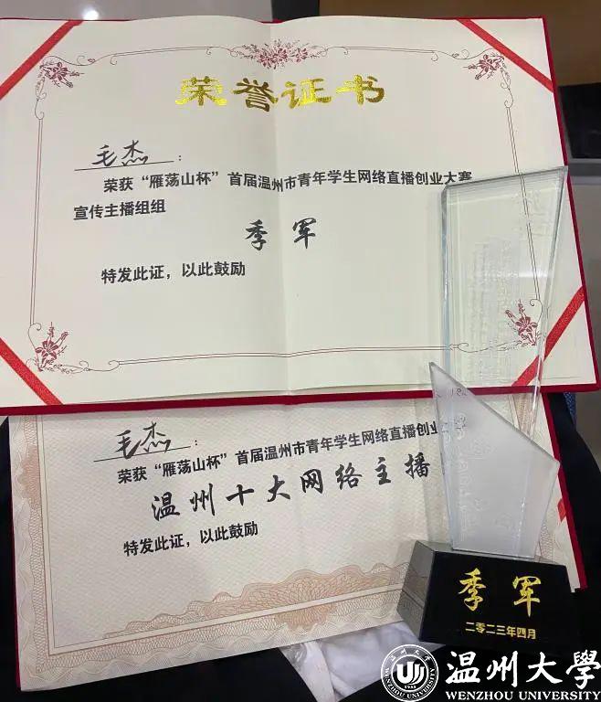 近日,“雁荡山杯”首届温州市青年学生网络直播创业大赛决赛于浙江安防职业技术学院举行,ac米兰官网中文网站教育学院学子毛杰获“宣传主播组”季军并获温州市“十大网络主播”荣誉称号。