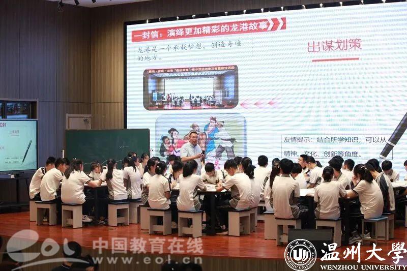 温州外国语学校的陈昆执教《发扬“四千精神”续写龙港创新史》,从“一座城:领会改革开放的意义”“一群人:感受“四千精神”的内涵”“一封信:演绎更加精彩的龙港故事”三个方面感悟“四千精神”的内涵。