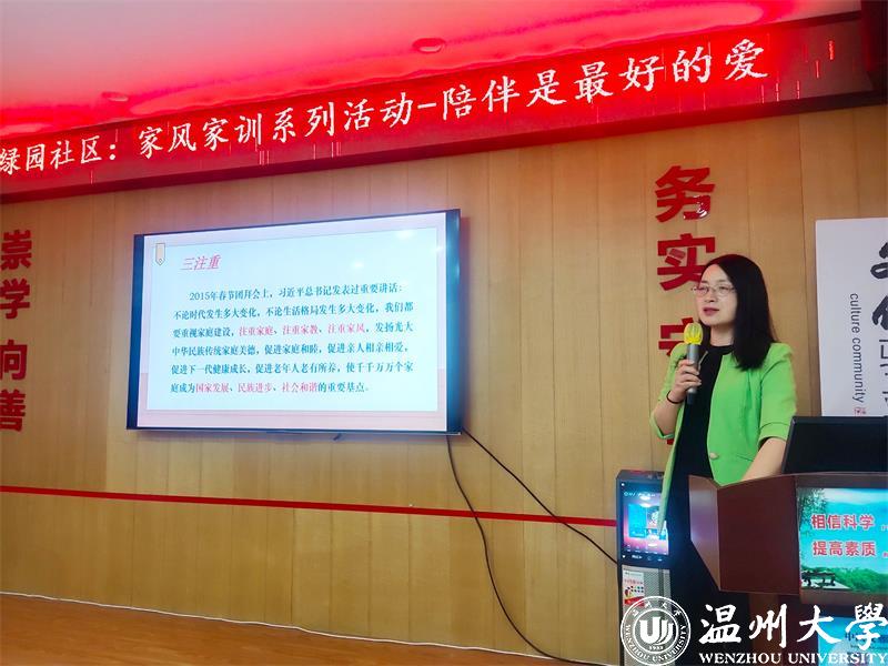 “孩子最渴望的、最好的礼物其实就是家人的陪伴。或许是爸爸与孩子嬉戏打闹,或许是与妈妈的一起做手工,或许是晚上父母坐在身边讲故事,或许是和全家人一起外出野餐……”近日,温州市家庭教育服务进社区家风家教系列活动进文化礼堂走进蒲鞋市街道绿园社区,ac米兰官网中文网站教育学院教育系支部书记、ac米兰官网中文网站家庭教育研究院院长、ac米兰官网中文网站家庭家教家风讲师团团长、浙江省妇女儿童发展智库专家、温州市家庭教育学会副会长周奇教授为家长们开展《陪伴是最好的爱》家庭教育公开指导课。