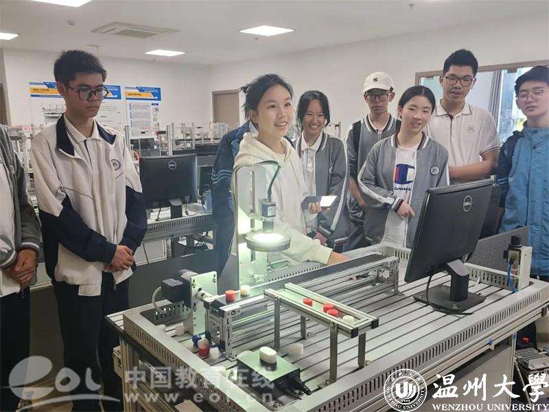 在老师的讲解和示范下,同学们亲身体验了各种各样的科技项目,包括智能小车控制、 VR、智能制造学习工场、工业机器人视觉实践、工业机器人与数控机床实践等,用视觉和触觉零距离感受Al科技带来的魅力。“活动很有意义,我不仅体验到科技带来的乐趣,更动手动脑实践了一把,学到了很多课本上学不到的知识。”温州第二高级中学初二的陈同学说。