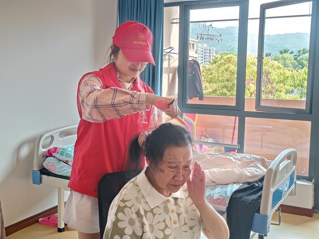 “今天是剃胡子大队长啦!”来自苍南的李志向同学在组织完康居乐慰问活动后兴奋的发了条朋友圈。他是“阳光”青年志愿者的骨干成员,“新生报到那天,学院给我们的大礼包里就有一个阳光青年志愿者的服务证,这深深地吸引了我,所以我毫不犹豫的成为了其中一员!”据李志向介绍,康居乐养老院是“阳光”青年志愿者本学期新建立的敬老服务基地,每周学院都会组织志愿者为该养老院的四十余位老人提供多样化服务。“我们一直在多方建立敬老服务基地,希望能为更多的老人带去关怀与温暖”。