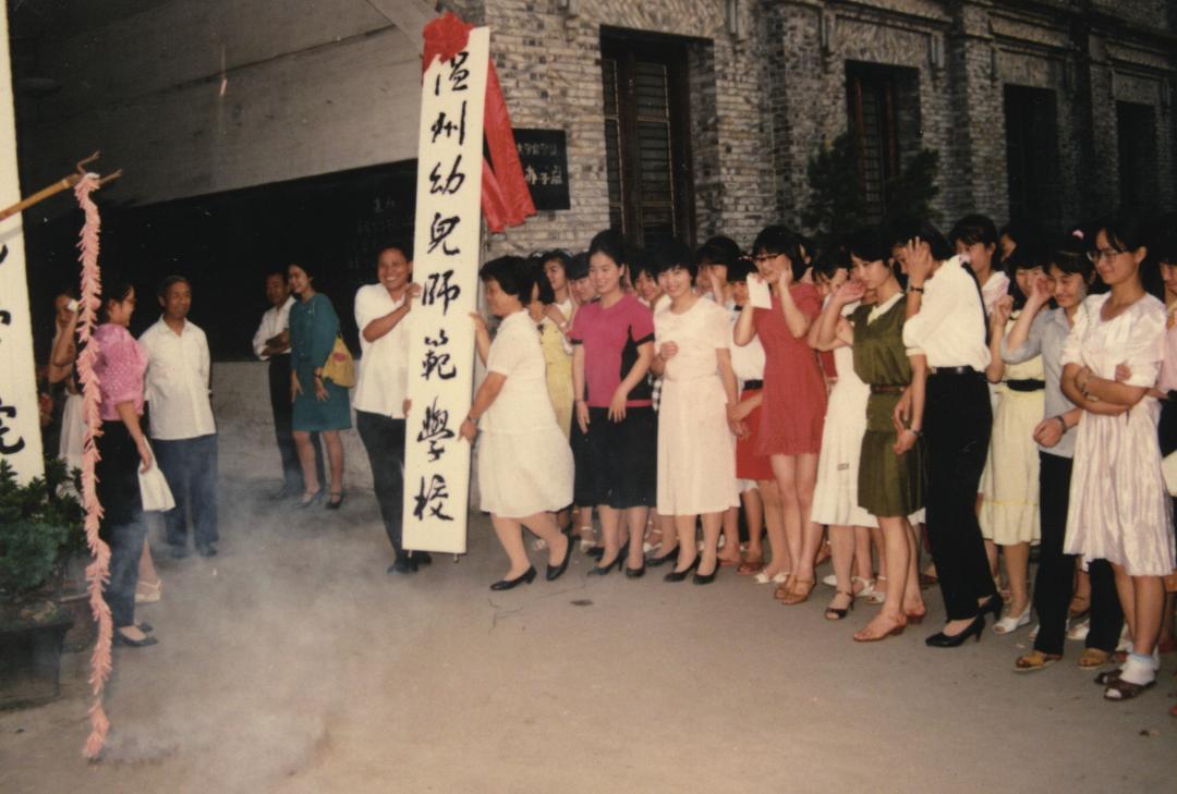 温州幼儿师范学校创办于 1984 年,图为 1989 年 7 月,温州幼师举行迁校挂牌仪式