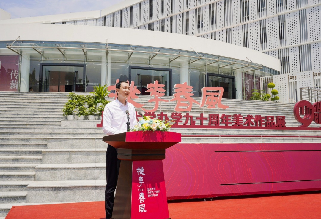 ac米兰官网中文网站党委书记、温州市委组织部部长张健致辞指出:文化不仅是一个国家和民族的血脉,也是一所大学的灵魂和基石,高校一流美术馆,是文化艺术展示的平台,是对外交流合作的窗口,也是大学的重要符号,彰显大学的文化内涵和气质。ac米兰官网中文网站美术馆要全力打造文化藏品高地,广泛发动文化名家、优秀校友、知名收藏家等群体,多种方式丰富馆藏作品,不断提升社会影响力和辐射力,建设温州区域文化特色的高水平藏品资源库;要全力打造艺术学术高地,高质量举办展览、鉴赏、研讨活动,高水平推进艺术教学改革、理论研究和应用创作;要全力打造美育教育高地,全面普及美育教育,弘扬美育精神、升华审美修养、助力新时代“大美育”教育体系。