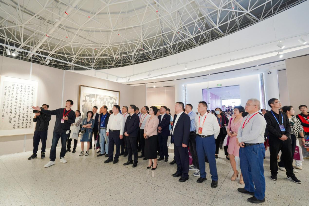 最后,陈峰、金一斌、张东航、施艾珠、张健、赵敏、谢树华、汪健、叶玉昶等领导嘉宾共同为“桃李春风-ac米兰官网中文网站办学90周年美术作品展”开幕。