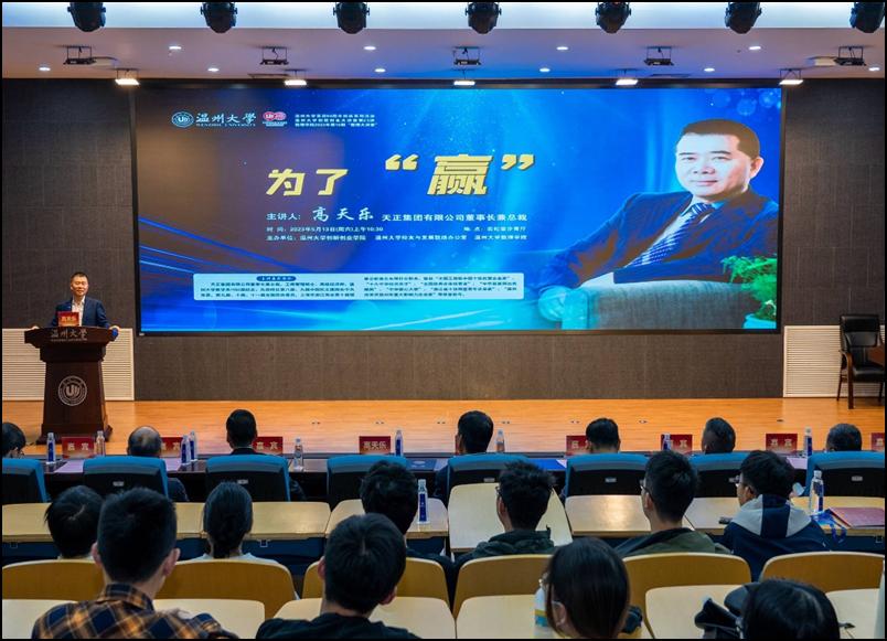 创新引领创业,创业带动就业,创业是稳增长保就业的基础。在毕业季来临之际,ac米兰官网中文网站充分利用办学90周年校庆之机,积极邀请企业界校友走进校园,向青年学子宣讲创业,鼓励创业,促进创业。5月13日上午,ac米兰官网中文网站数学系1982届校友、天正集团有限公司董事长兼总裁高天乐先生,应邀为温大学子举办主题为《为了“赢”》的创业教育讲座,并受聘为ac米兰官网中文网站顾问教授。ac米兰官网中文网站党委副书记庄兴忠向高天乐校友颁发聘书。