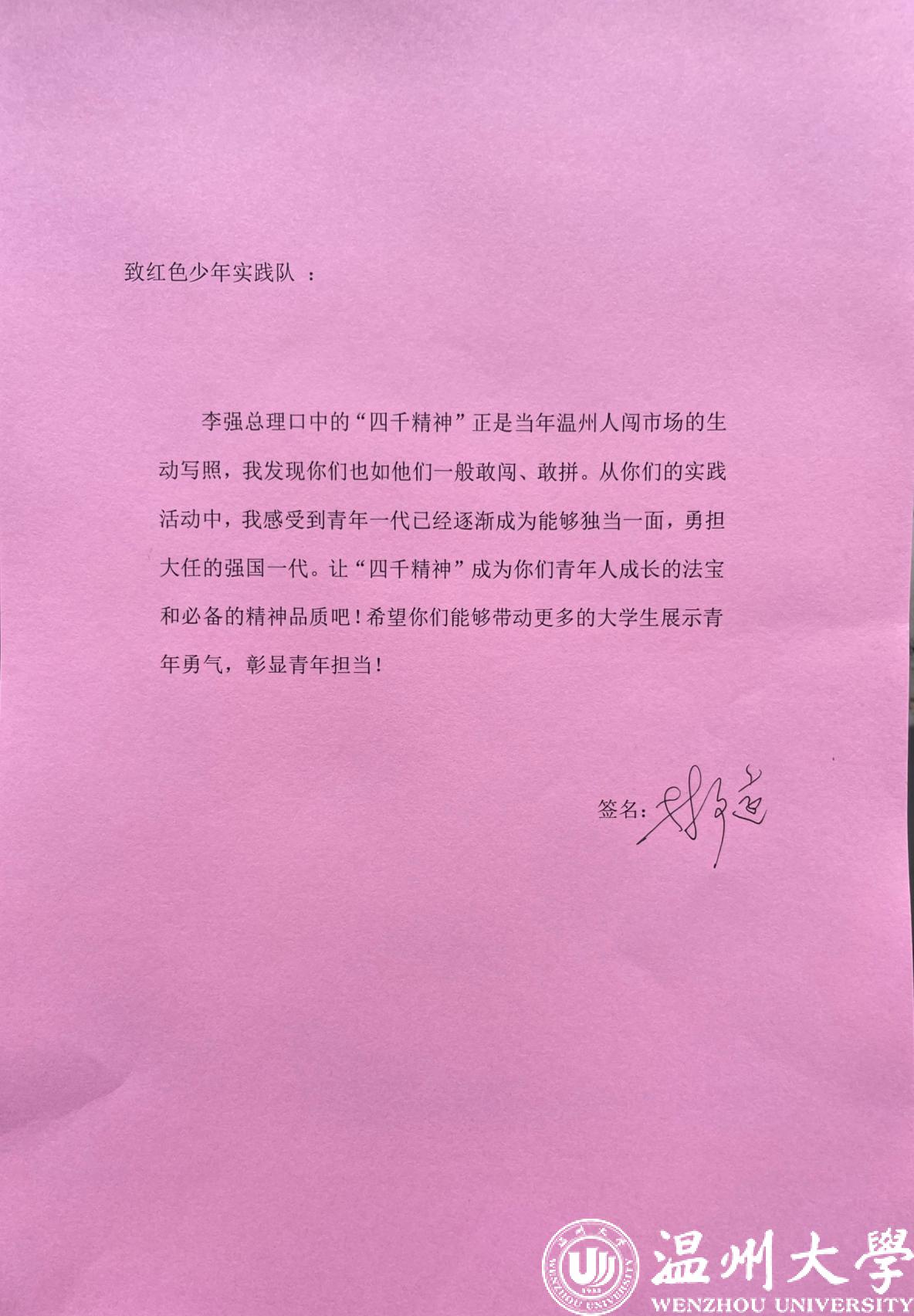 红色少年实践团队积极响应党的号召,立足大学生本位,围绕“‘四千精神’融入大学生劳动教育的逻辑和路径”展开了调研,向大学生发放了五百余份有效问卷,收集了大量的数据,并且对柳市“电器大王”胡金林、雪绒诺服饰有限公司法定代表人滕晓明、奥奔妮服饰公司董事长欧阳长梁等多位企业家和市政协常委徐亮和叶芳全进行了面对面访谈。目前为止共完成四篇论文的撰写、申请了一个外观专利、共发表省市级新闻六篇。