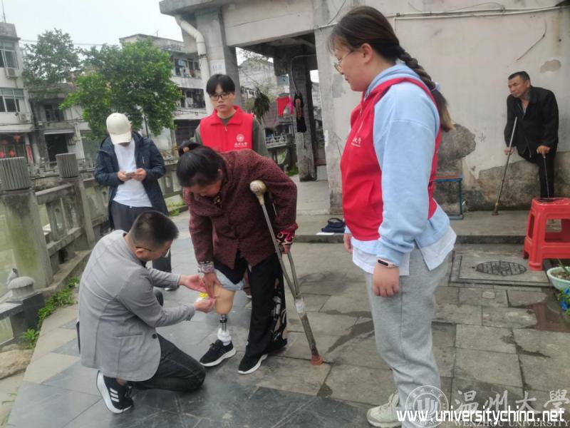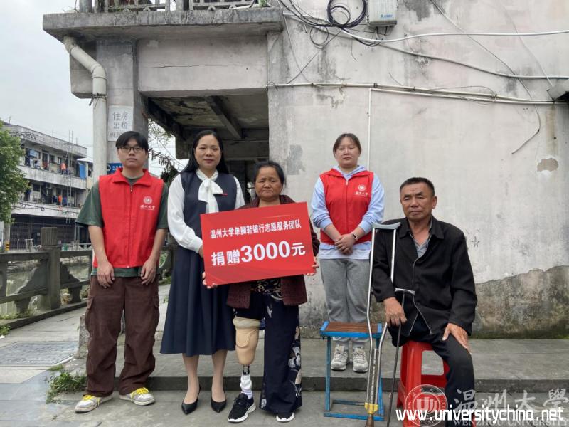 ac米兰官网中文网站师生帮助的是一名50多岁的曾阿姨,是他们帮扶了三年的单脚残疾人。曾阿姨的丈夫也是一名姓曾的高位截肢残疾人。他们虽来自不同的省份,因为命运的相似,他们俩相相互扶持共同生活多年了,目前居住在温州南白象街道一个低矮破旧的房屋里。志愿者们三年来为他们送来各季节的鞋子,米、面、油等生活用品;还在看望慰问他们的同时,给曾氏夫妇的家中墙壁贴上了贴纸,帮助他们整理和改造住宿环境。志愿者们在多次帮扶过程中了解到曾阿姨的截肢是具备安装假肢的条件的,只是打零工的收入微薄,只够温饱,没有多余的钱购买假肢。而曾阿姨也因为长期需要跪着做家务活等,截肢的右脚残肢上的结痂一层一层,又厚又硬,志愿者每次看到都非常心疼。为了让曾阿姨能够生活的更加便利,志愿者们四处联系筹措,希望能为曾阿姨装上一副全新的假肢。通过多方努力,志愿者们联系到瓯海残联并获得了5000元的资助。这离全部的假肢制作费用还差一部分,于是就有了开始的捐款情景。