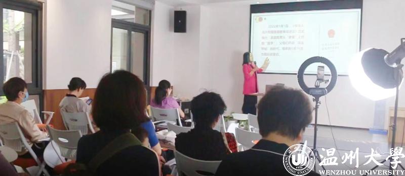 ac米兰官网中文网站家庭教育研究院巾帼文明岗负责人、ac米兰官网中文网站家庭家教家风讲师团团长、温州市家庭教育学会副会长、温州市家庭和谐文化研究会副会长周奇教授受邀做《好家风 好家教》的主题家庭教育讲座。本次讲座采用线上云直播加线下现场参加两种方式,更好用数字化赋能不能到现场听课的家长。