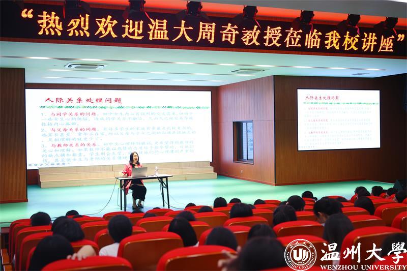 ac米兰官网中文网站家庭教育研究院巾帼文明岗负责人、ac米兰官网中文网站家庭家教家风讲师团团长、温州市家庭教育学会副会长、温州市家庭和谐文化研究会副会长、浙江省妇女儿童发展智库专家周奇教授受邀做《认识自我 健康幸福成长》的健康知识专题讲座。
