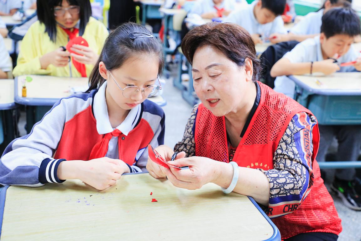 一张张红纸,一把把剪刀,在学生们的巧手中,一份份作品“跃然纸上”。薄薄的红纸,将传统与现代、亚运精神与非遗文化紧紧相连。