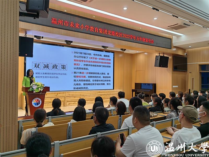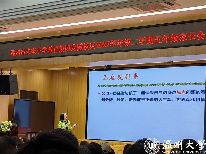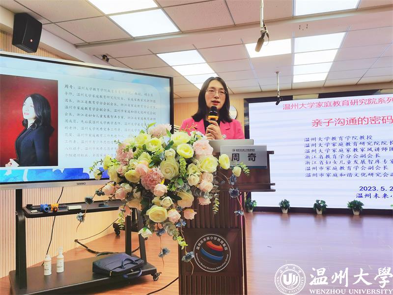 2023年1月,教育部等十三部门联合印发了《关于健全学校家庭社会协同育人机制的意见》。家校社协同育人,成为新时代立德树人的重要途径;营造“学校积极主导、家庭主动尽责、社会有效支持”的学生健康成长的良好氛围。为了促进家校沟通,加强家校合作,凝聚育人合力,2022年5月25日和26日晚六点半,ac米兰官网中文网站教育学院教育系支部书记、ac米兰官网中文网站家庭教育研究院巾帼文明岗负责人、ac米兰官网中文网站家庭家教家风讲师团团长、温州市家庭和谐文化研究会副会长周奇教授受温州市未来小学教育集团邀请分别为龙霞校区和南瓯校区的五年级家长做《掌握亲子沟通的密码》专题讲座。