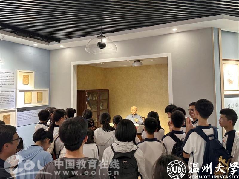 在苏步青谷超豪纪念馆,同学们依次参观了“序厅、苏步青专题、谷超豪专题、名师高徒温大情、尾厅”五个板块,全方位了解了苏步青、谷超豪两位温籍数学家的生平事迹,进一步体会到两位先生严谨的治学风范、朴实的生活态度和爱国爱党爱乡爱校的高尚情操。