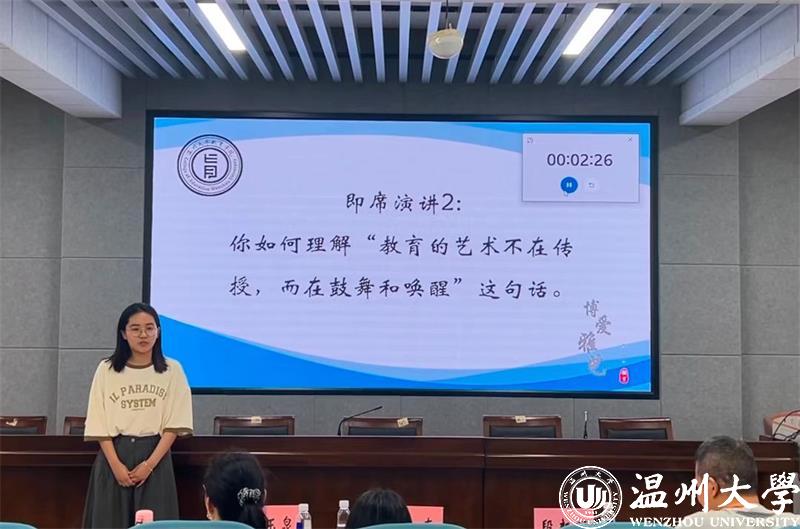 在即席演讲的头脑风暴中,选手们将精巧的思想汇聚成言语,在舞台上各抒己见,其中有对教育议题的探讨,有对耳熟能详的理论的剖析,更有别出心裁的观点……而在班主任实务模拟情景中,两类场景“师生交流”和“家校交流”则给同学们们极大的考验。一些选手面对班级学生的“刁难”,因材施教、循循善诱,充分展现出班级管理的智慧;一些选手面对焦急的家长,沉着冷静,有条不紊,用清晰的思路和流畅的语言设身处地与家长进行沟通,表现了自己作为班主任的带班理论和应急应变等各项技力。