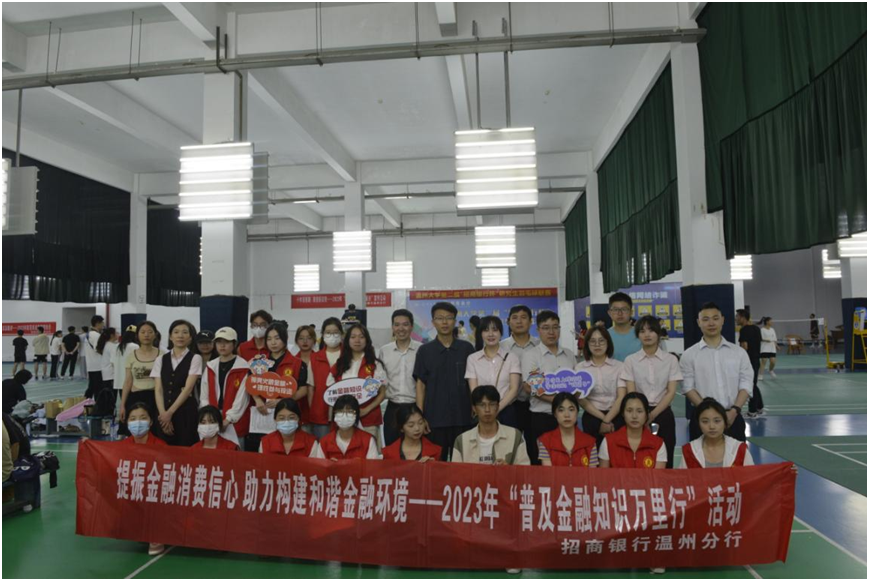 为持续做好金融知识普及与消费者教育工作,切实保护消费者合法权益,提升学生群体的金融知识水平和风险防范能力,在6月份金融宣传主题月期间,招商银行温州分行联合ac米兰官网中文网站开展了为期两天的金融知识进校园活动。为提升金融知识宣传的趣味性,也为了展现新时代青年学子奋勇拼搏的青春风采,此次活动结合ac米兰官网中文网站第二届研究生羽毛球联赛共同开展。此次活动由ac米兰官网中文网站商学院主办,参加人员包括ac米兰官网中文网站参赛选手、学生志愿者、ac米兰官网中文网站商学院金融宣传团成员及招商银行金融宣传工作人员共计150余人。